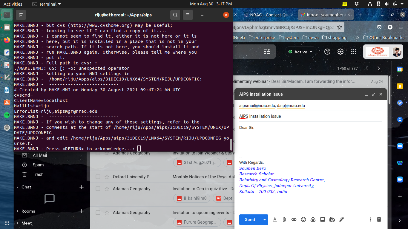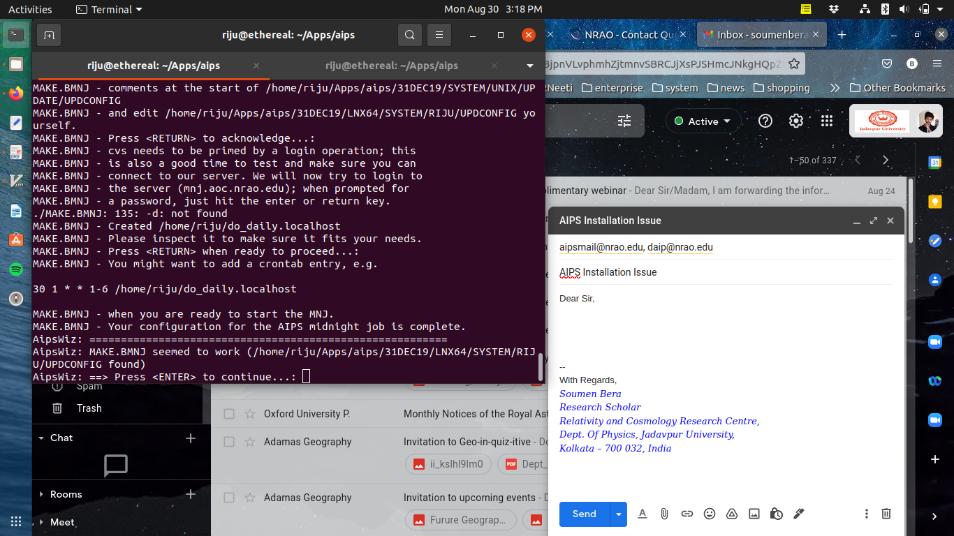 I wish to install AIPS (31DEC2019 version) in my UBUNTU 20.04 LTS system. I