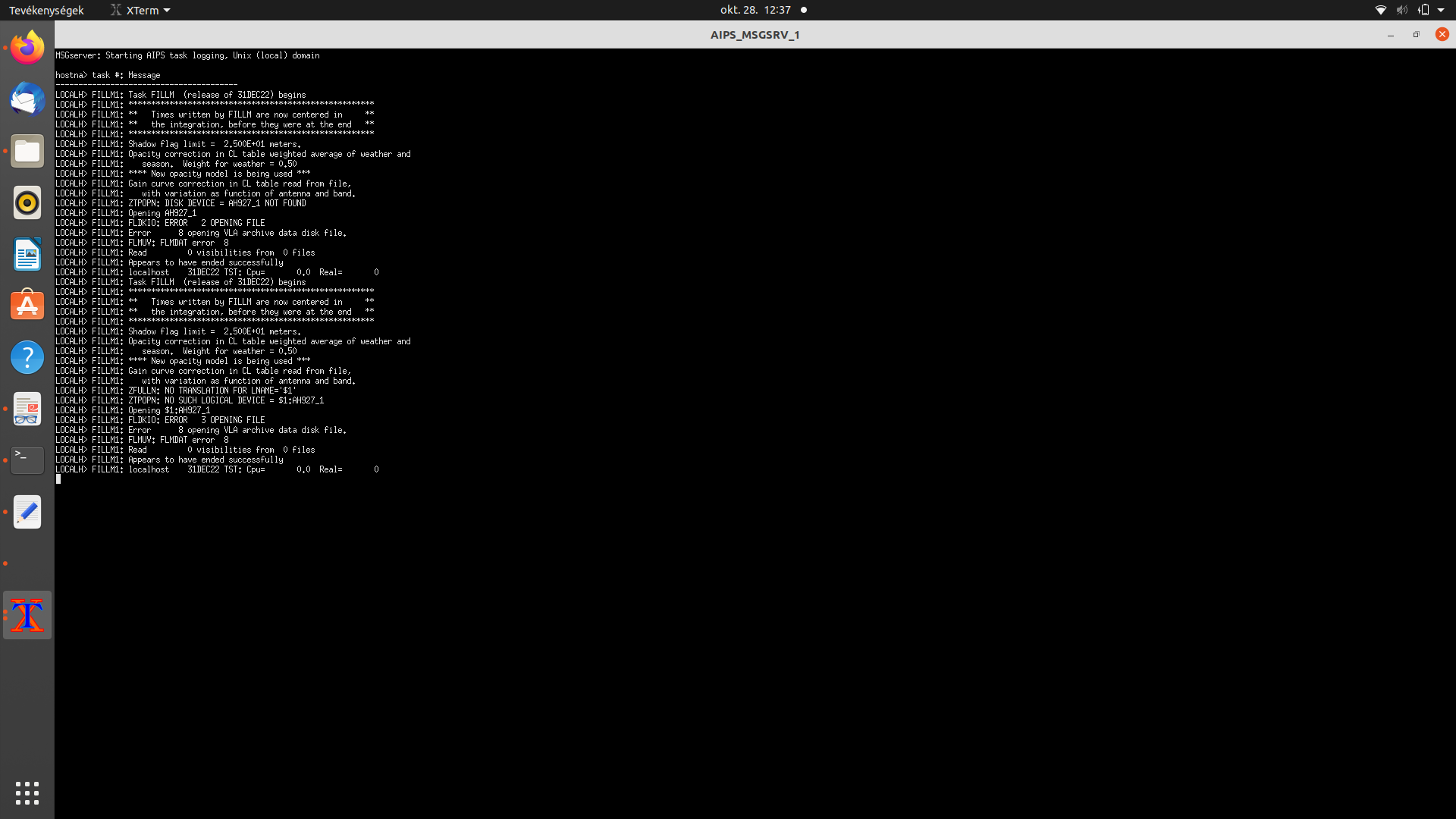 get a message in the AIPS_MSGSRV window that says 'ZTPOPN: DISK DEVICE NOT