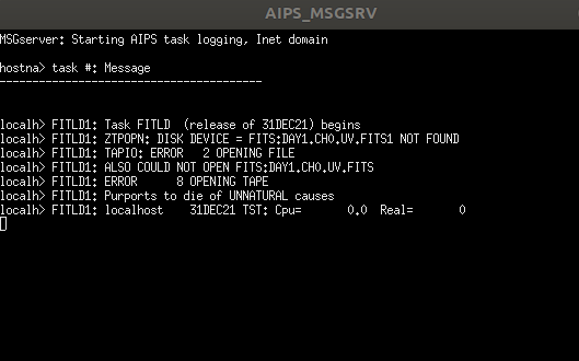 I am currently using version 31DEC21 of AIPS and have encountered an issue where it does not display any of my files, and reports the following error: