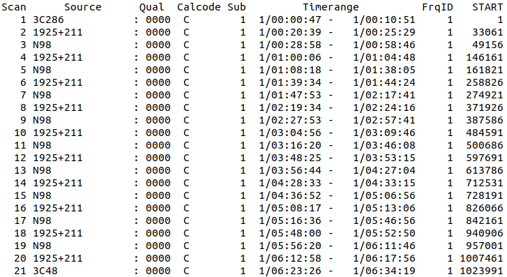 Now I am doing task QUACK. However, I don't know what the values of APARM in it should be. I will do the cutting at the beginning of each scan, is it enough? Or should I do the cutting at the end of each scan also? The attached file shows the scan data which I retrieve from task LISTR.