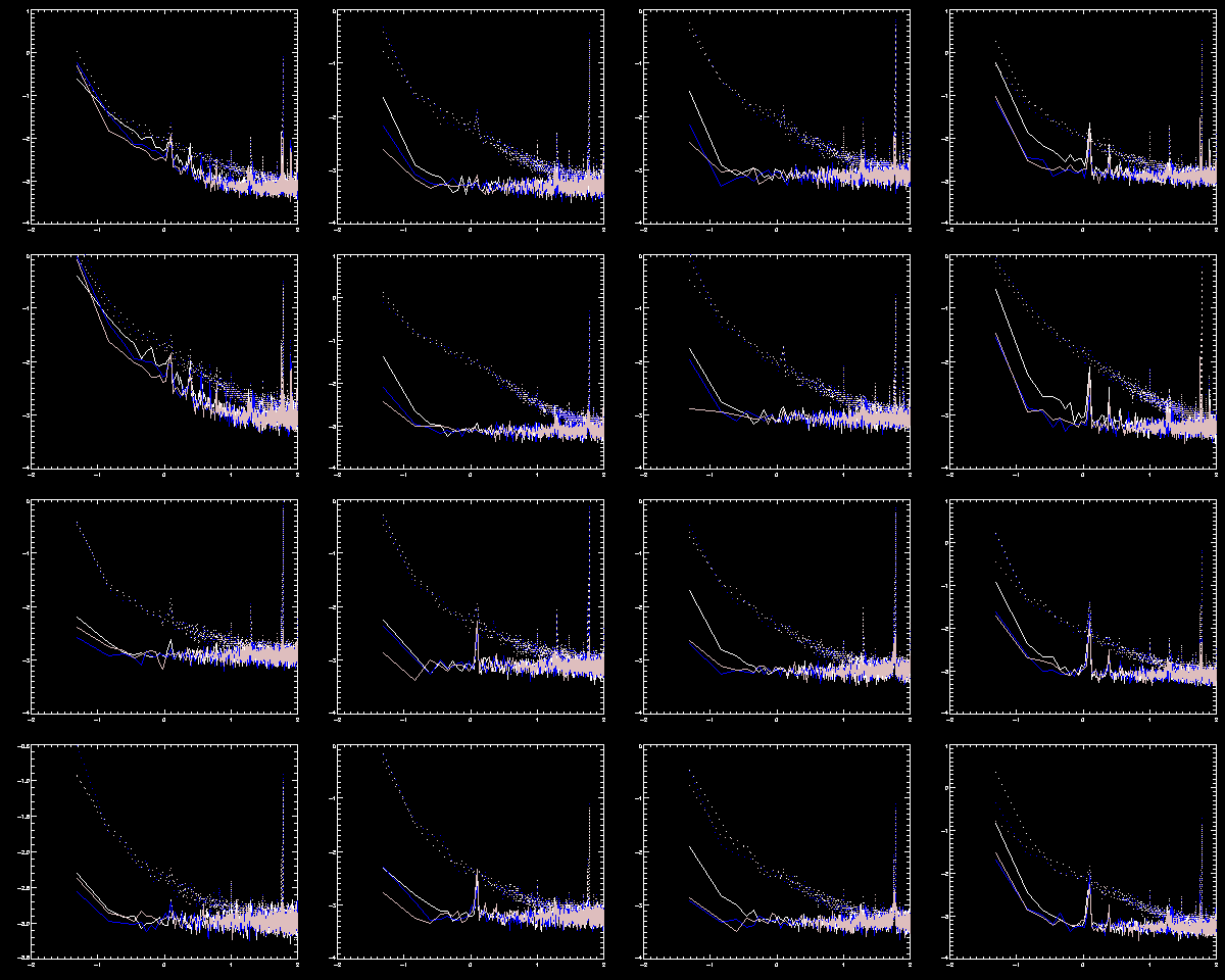 row down left to right), etc. Axes are log10(frequency) and log10(power